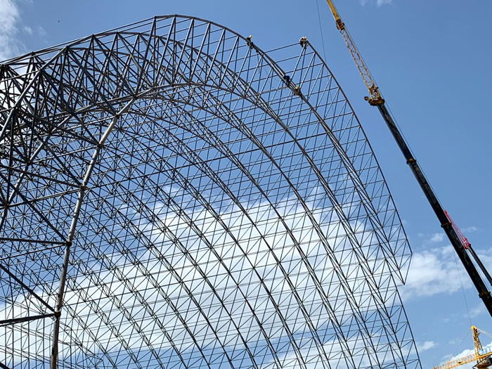 (2)网架加工前应对现场尺寸进行复测,确认无误后方可进行加工、安装;网架制作、运输、安装应遵守《空间网格结构技术规程》JGJ7-2010、《钢网架诸城螺栓球节点》JG/T 10-2009、《钢网架诸城螺栓球节点用高强度螺栓》 GB/T 16939-2016、《诸城钢结构诸城工程诸城施工规范》 GB50755-2012、《诸城钢结构诸城工程施工质量验收标准》 GB50205-2020。