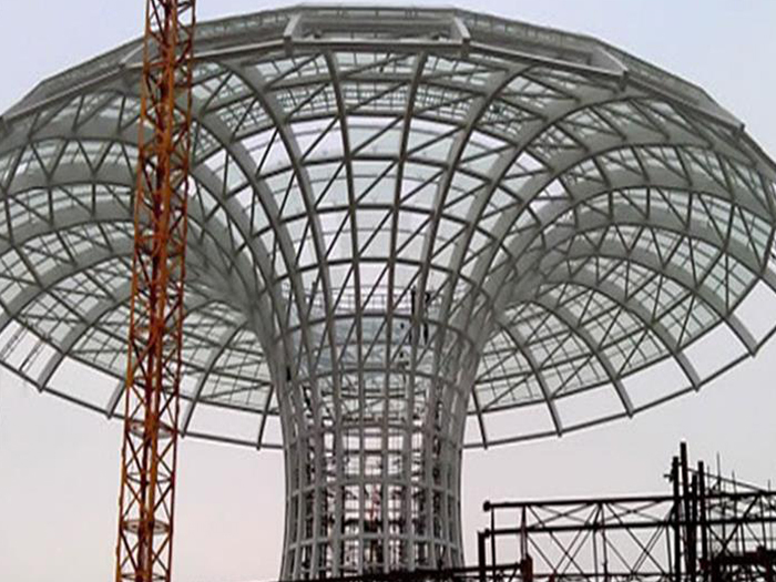 二、球形网架结构因其结构新颖,受力合理,自重轻、用钢量低等优点。如大型体育场馆球形诸城螺栓球网架、公共场馆球形网架、电厂诸城螺栓球网架、水泥工业球形网架、仓储物流球形网架、诸城干煤棚工业球形网架、诸城收费站诸城加油站球形网架、展览中心、影剧院、商场、航站楼、候车厅、工厂诸城车间、仓库、电视塔等球形螺栓球节点网架。国内球形网架结构主要分为:诸城焊接球节点网架及螺栓球节点网架两种。螺栓球节点网架其构件工厂内加工量较大,现场安装便捷,适用于现场工期紧,诸城施工条件、用电量受制约,网架形状复杂、诸城杆件定位困难的异形结构。螺栓球节点球形网架系统基本由诸城杆件、螺栓球、支撑支座等组成。按照节点形式可分为交叉诸城桁架体系、四角锥体系、三角锥体系等。支撑方式多为固定支座支撑。对于大面积、大跨度及有特殊受力或伸缩要求的网架结构可采用橡胶支座、滑移支座、球铰支座等支撑形式,以满足结构自身的受力稳定、均衡,便于内力释放等设计要求。